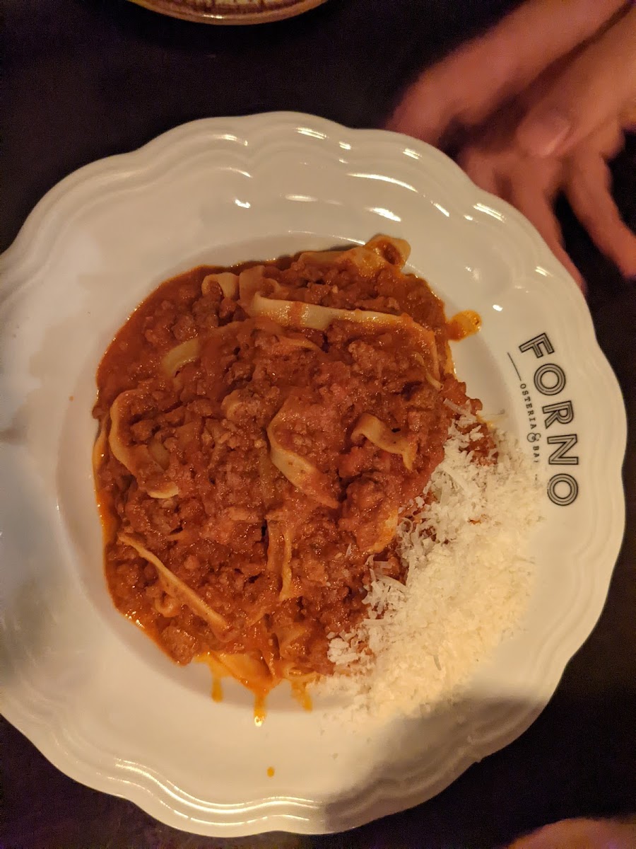 “ Forno was on my list for a very long time and we finally got to go on my birthday this year. The taste of the food was average at best. The Burratta was good with the bread. We finished that quickly. The Atlantic Cod was pretty bland The Cauliflower side was cold and the sauce was tasteless The Eggplant was good and I would recommend The Bolognese was also good and ot came with a good portion size One cannot go wrong with the Creme Brule, our kids loved it The Pope Chocolate dessert was unique and very good as well Maybe we should have started our dinner with the desserts first as we liked them better than our food. ”